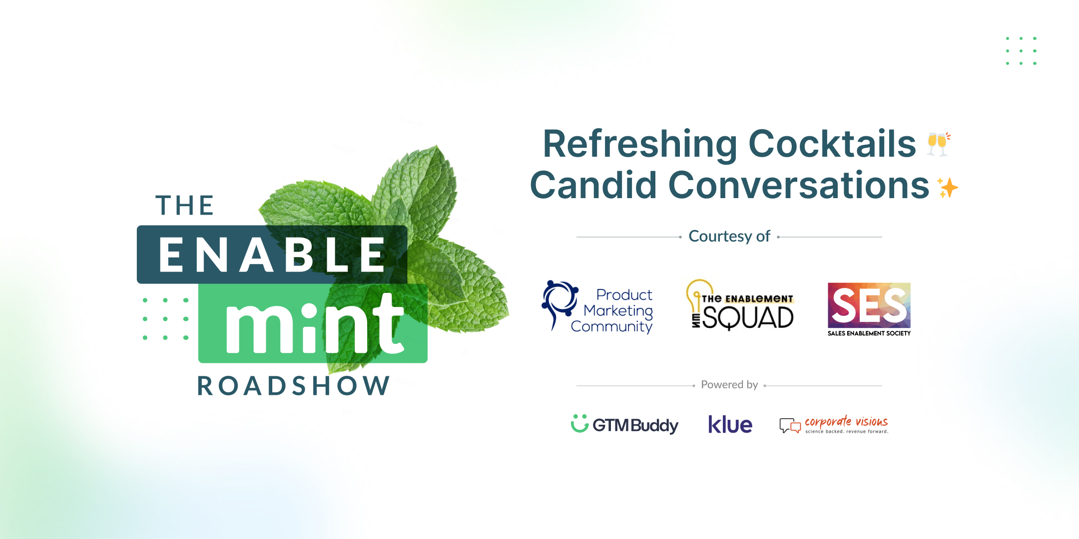 The Sales Enablement Society has partnered with our good friends at Product Marketing Community and The Enablement Squad to bring you “The Enable-mint Roadshow: Refreshing Cocktails. Candid Conversations".
